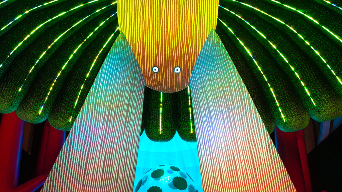 Upplevelsen ”Modern Guru and the Path to Artificial Happiness” är skapad av den flerfaldigt prisbelönta konst- och teknikstudion ENESS från Melbourne, Australien. Studion producerar modern, interaktiv konst som kombinerar flera discipliner, bland annat skulptur, textil, design, programmering, musik och berättande. ENESS strävar efter att skapa möten mellan generationer. Teamet drivs av övertygelsen att konst i vardagen har kraften att tända fantasin; att sprida glädje, lycka och skönhet på oväntade platser – och ge transformativa upplevelser som kan förändra liv.